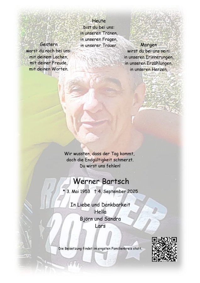 Wir möchten unser tief empfundenes Beileid zu Eurem Verlust mitteilen. In Gedanken sind wir bei Euch und wünschen Euch viel Kraft für die kommende Zeit.